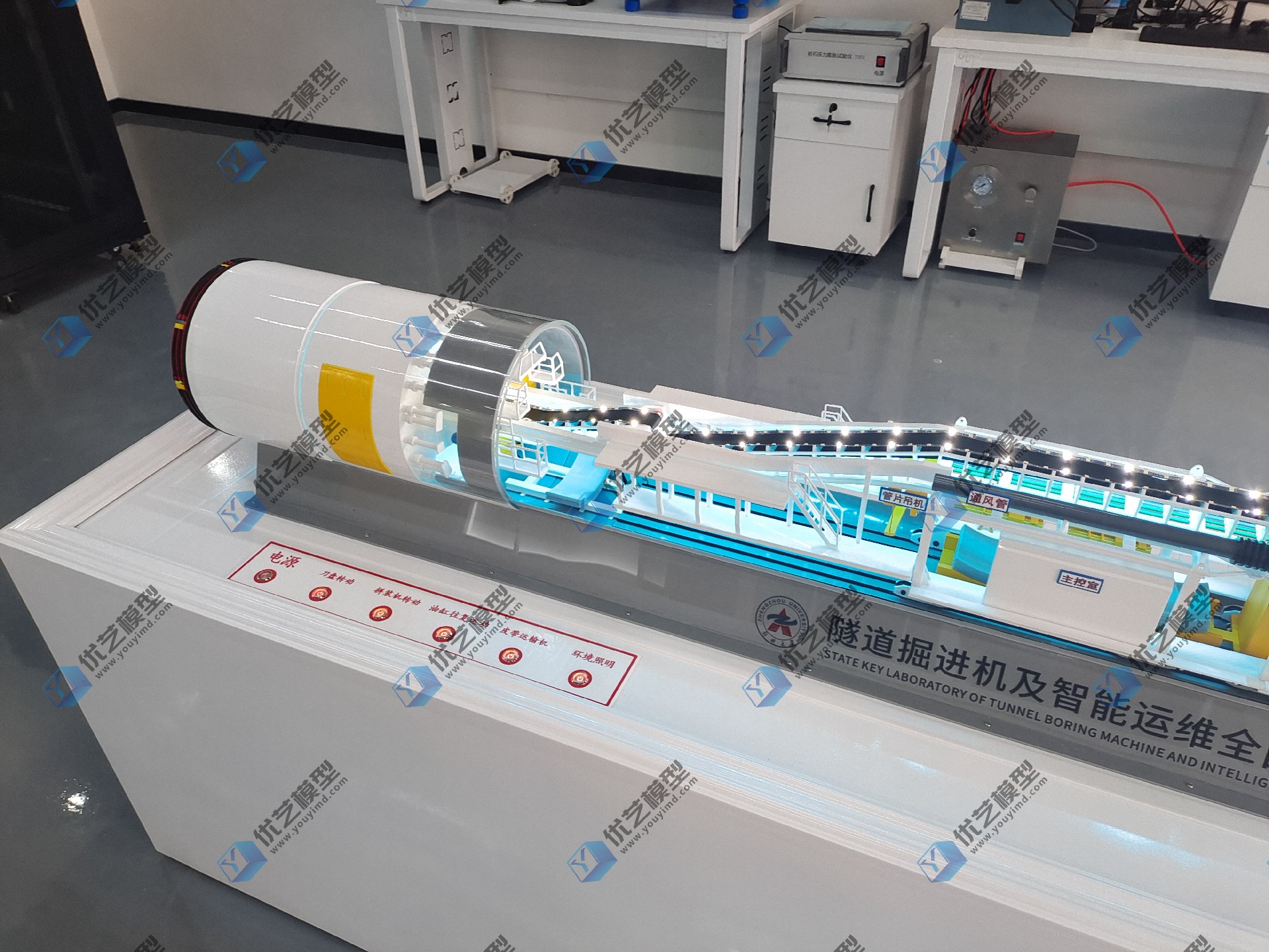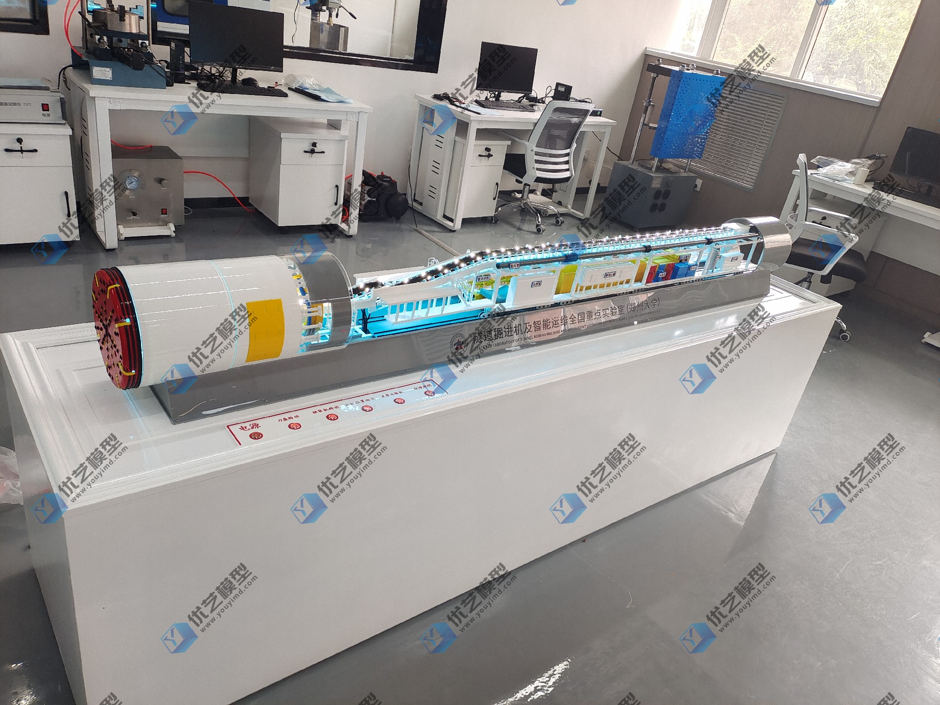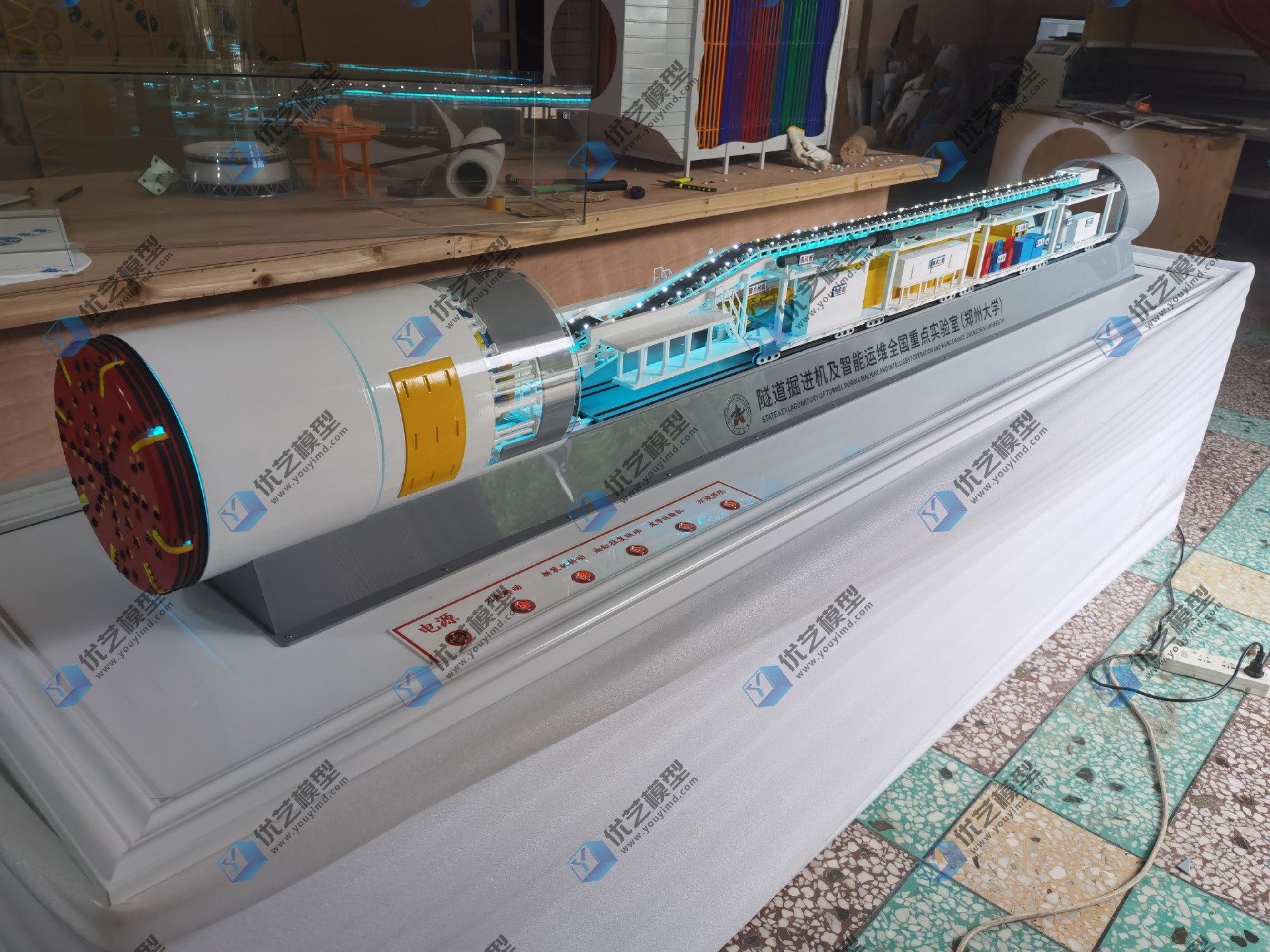 TBM盾構機教學模型是湖南省優藝模型與鄭州大學合作研發制作的,旨在為教育和專業培訓提供高質量的教具資源。