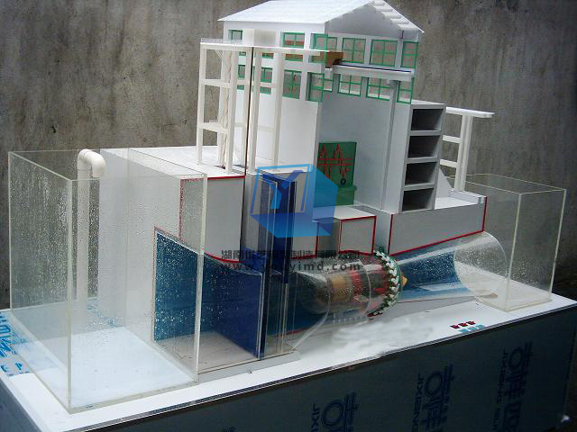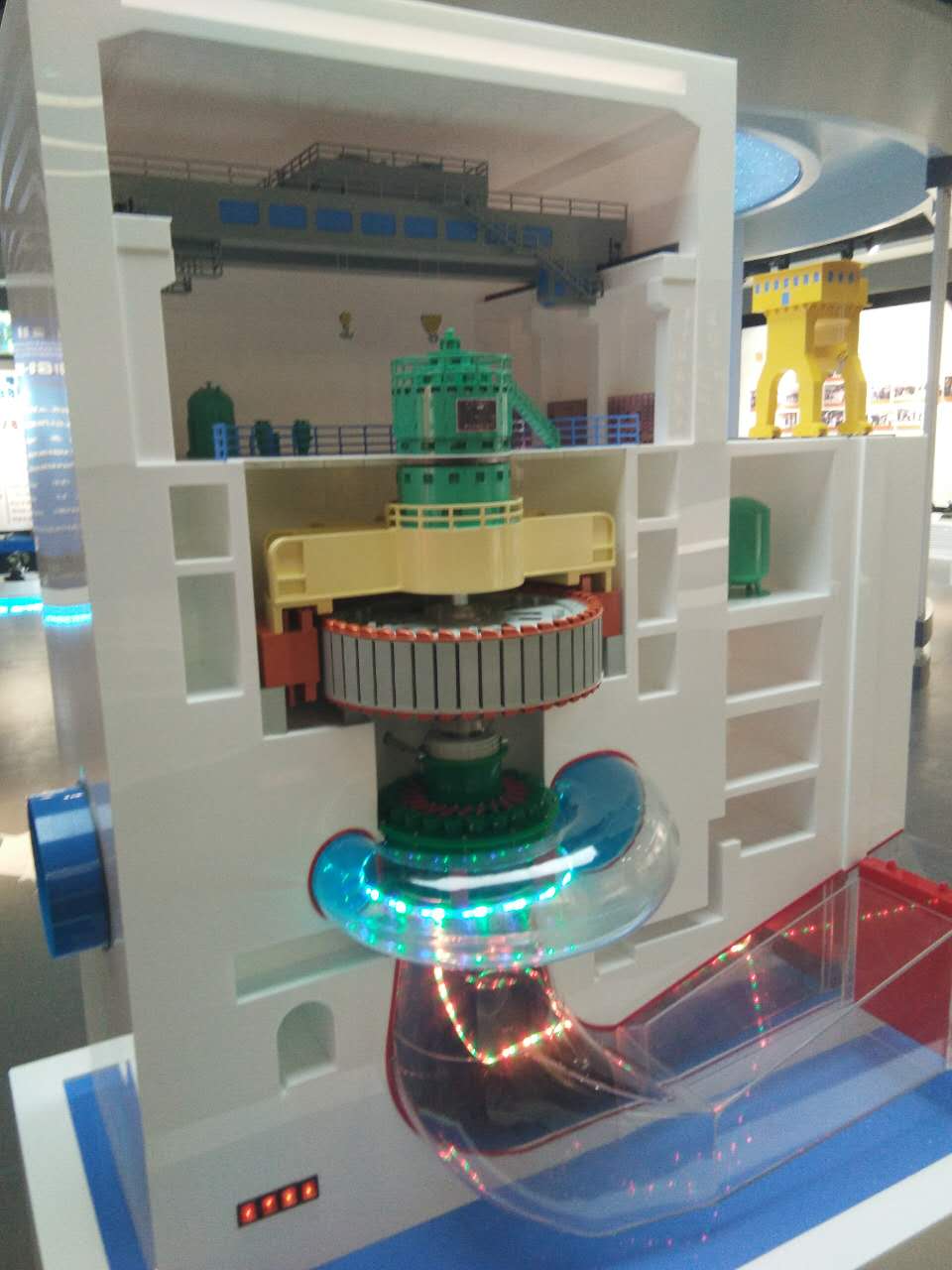 模型操作采用傳統控制開關,控制水輪機工作動態演示與燈光(水流流向)流程。