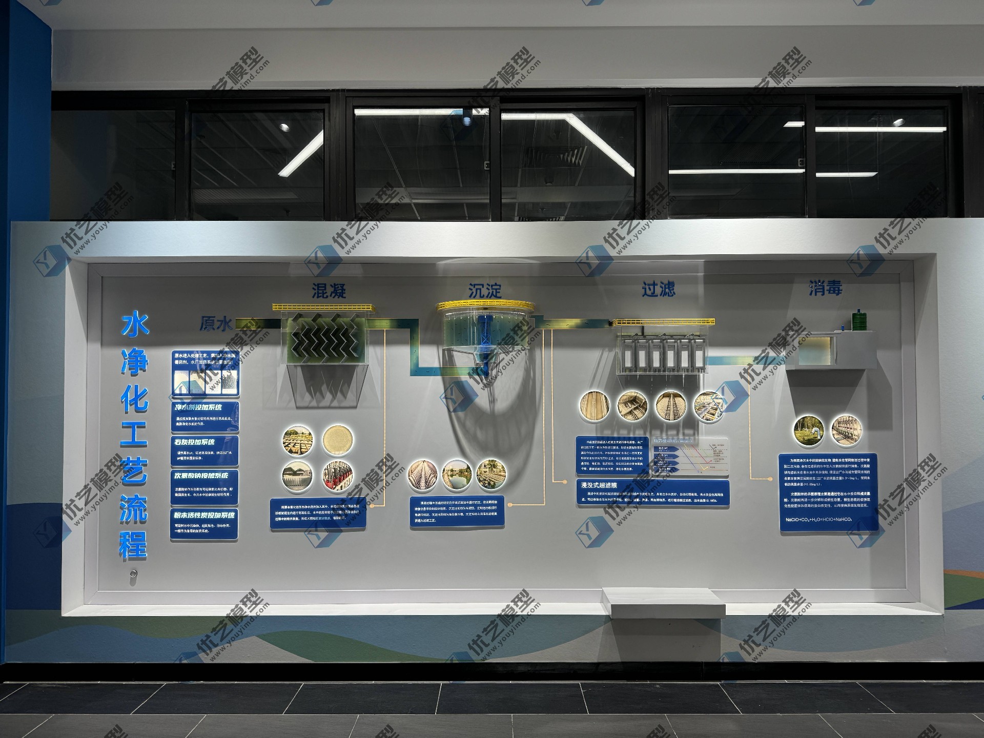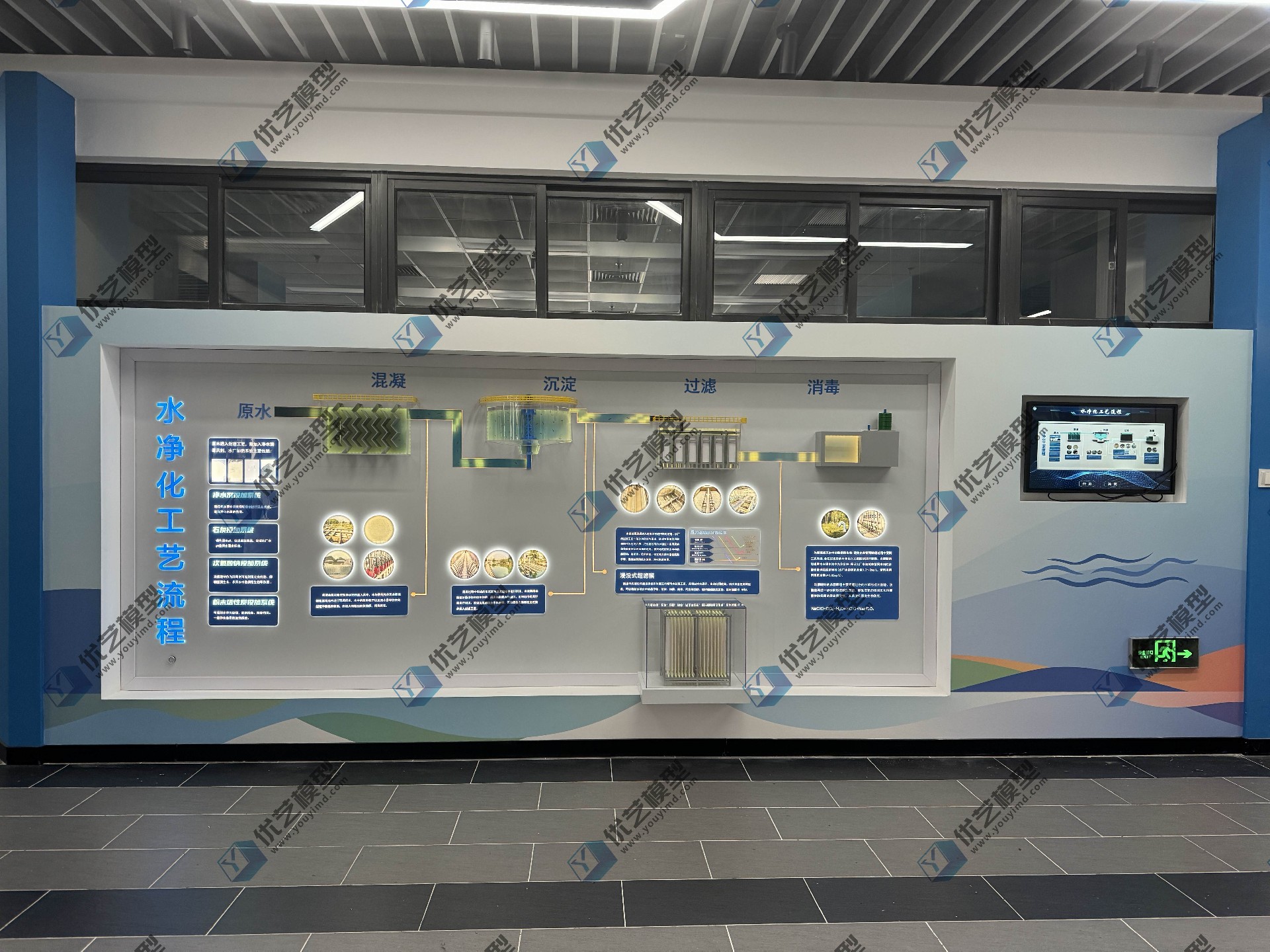 水凈化工藝流程模型,是由湖南省優(yōu)藝模型有限責(zé)任公司根據(jù)業(yè)主要求,匠心打造的專業(yè)科教裝置。模型采用3900mm超長墻面掛板設(shè)計,將混凝、沉淀、過濾、消毒四大核心工藝,以立體透明結(jié)構(gòu)全景呈現(xiàn)!每個處理池均采用高透亞克力材質(zhì),讓設(shè)備內(nèi)部構(gòu)造一目了然;創(chuàng)新配備LED流水燈動態(tài)系統(tǒng),生動模擬真實水流動線,如同親眼見證"濁水變清泉"的魔法過程。